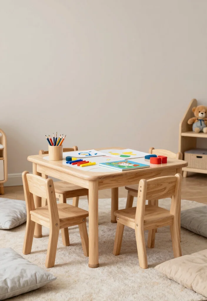 Choose child-friendly furniture with rounded edges and natural materials.