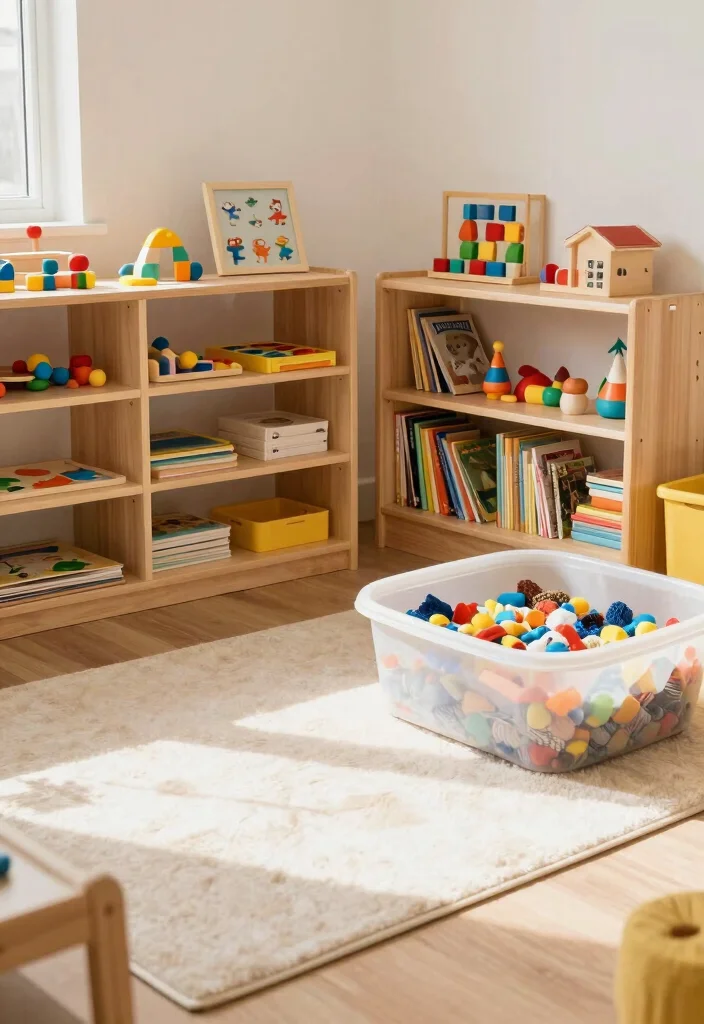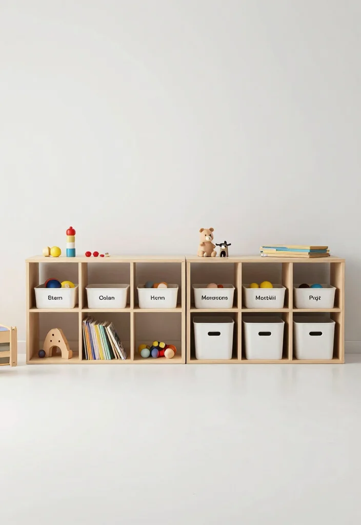 – Categorize toys into labeled bins for easy access.