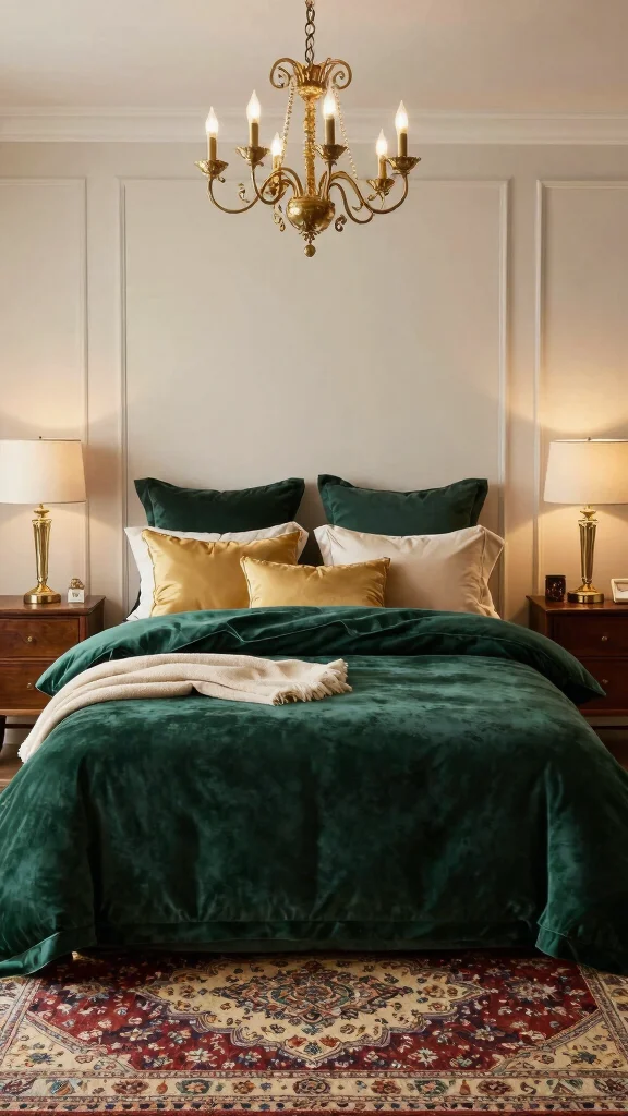 Start with a high-quality foundation by choosing a dark green bedding piece in a luxe fabric like velvet or sateen. Pair it with neutral walls in cream or warm taupe to let the color pop. Layer textures with a soft throw, knit blankets, and dark green home accessories like velvet cushions or a patterned rug to add depth. Add metallic accents in brass or gold for a refined touch and keep patterns minimal on the main pieces to preserve a sophisticated look. This approach blends luxury bedding with rich color palettes for an undeniably elegant result.