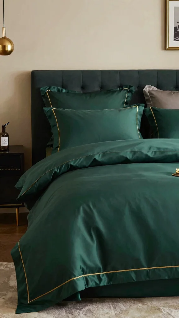For a timeless and luxurious appearance, consider pairing dark green bedding with gold accents. This classic combination radiates elegance and sophistication, making it perfect for a chic bedroom style. Introduce gold through accessories like lamps, mirrors, or decorative trays that beautifully complement the rich green.
