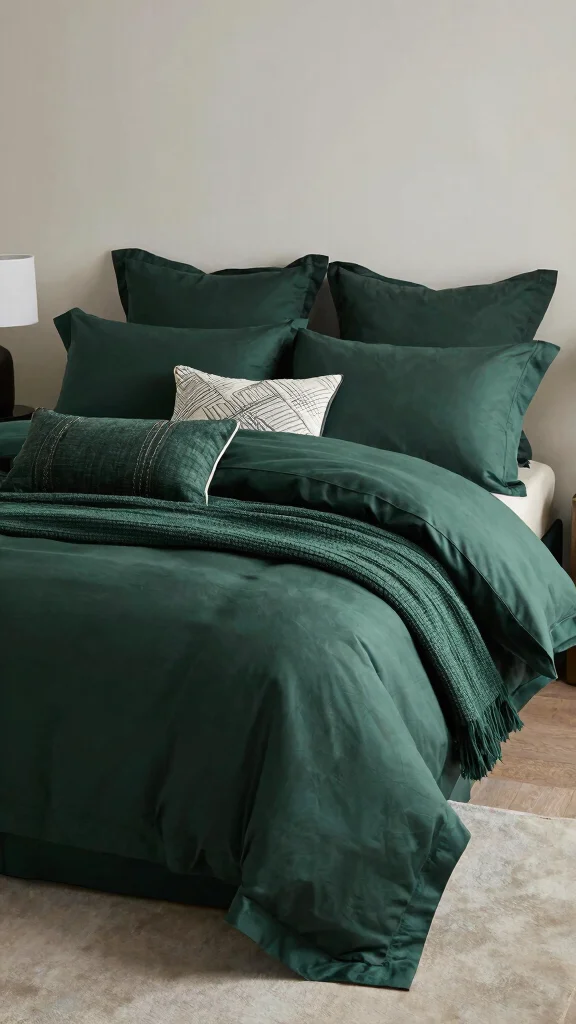 Dark green bedding offers a stunning canvas for creating rich, elegant rooms full of personality and warmth. By exploring these ideas and combining textures, colors, and patterns, you can craft a luxurious bedroom that feels both inviting and stylish. Each of these elements showcases the beauty of dark green, allowing your space to reflect your unique taste and style. So go ahead, embrace the richness of dark green and elevate your bedroom decor!