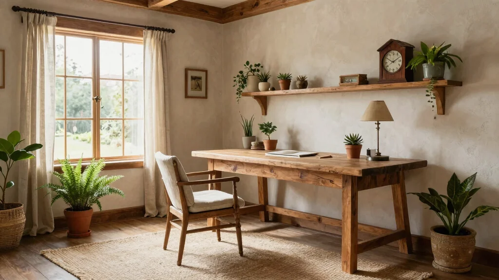 Add rustic elements like woven baskets or antique furniture to round out the inviting vibe. Layered lighting, such as a rustic chandelier, amplifies the charm, making it ideal for those who appreciate a stylish yet homey space.