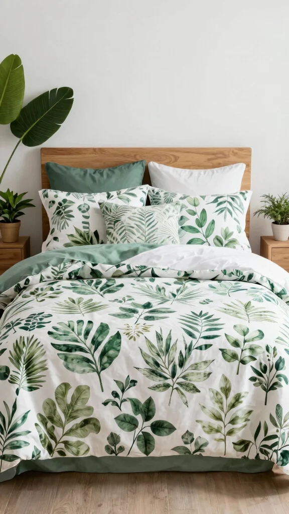 Fun fact: Green and White bedding with botanical prints can boost perceived calm by up to 50% in a room, while organic cotton reduces chemical exposure. Embrace natural wood accents and minimal decor to let the prints shine.