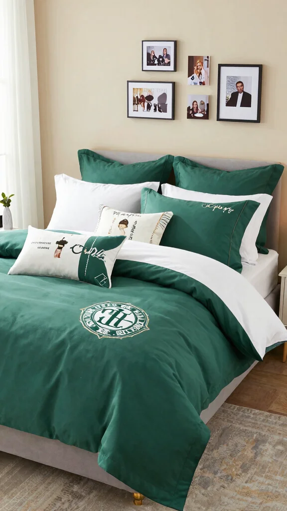 Personalize your green and white bedding to truly make it your own. Consider custom prints or monograms that reflect your unique style and character. Adding personal touches to your bedding can create a sense of pride in your space and elevate the overall decor. Combine your custom designs with neutral or solid colors to prevent overwhelming the space. You might also explore DIY projects, like creating your own throw pillows with fabric paint or patches.