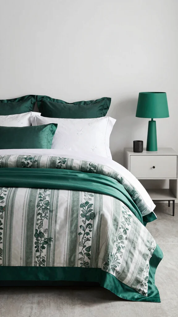 While green and white are your main colors, consider the shades involved. Soft sage and crisp white evoke a serene atmosphere, while deeper emerald paired with bright white creates a more dramatic look. You might also want to incorporate accent colors, like soft grays or muted yellows, to add depth to your bedding design.