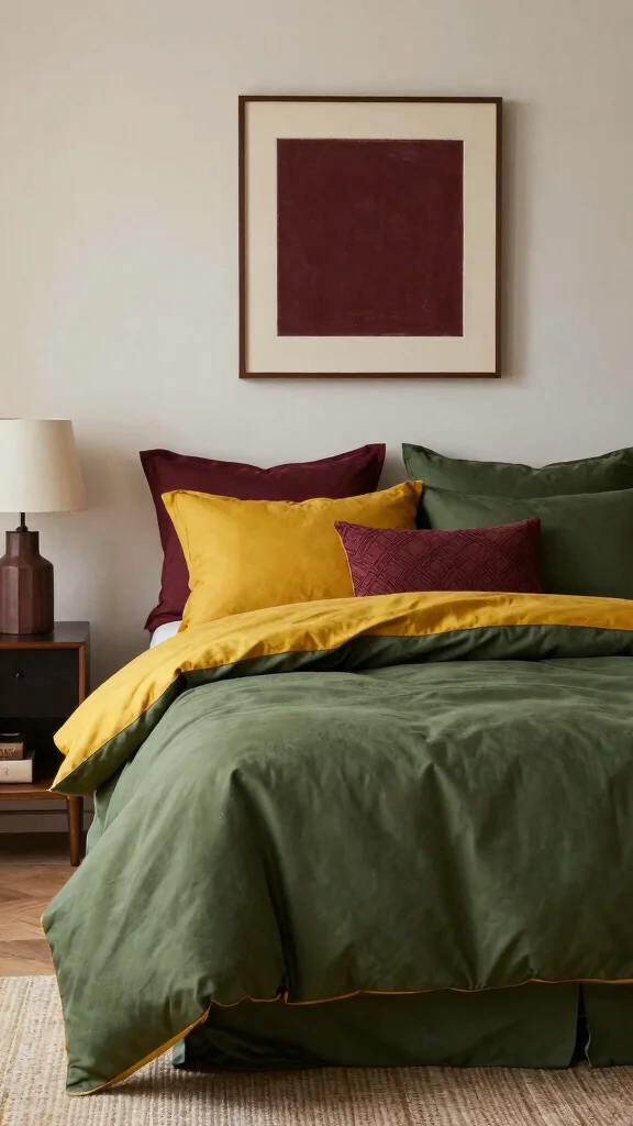 5) Use lighting and art that echo the earthy color palettes while keeping the space uncluttered. This approach aligns with bold bedding ideas and creates cohesive masculine bedroom decor.