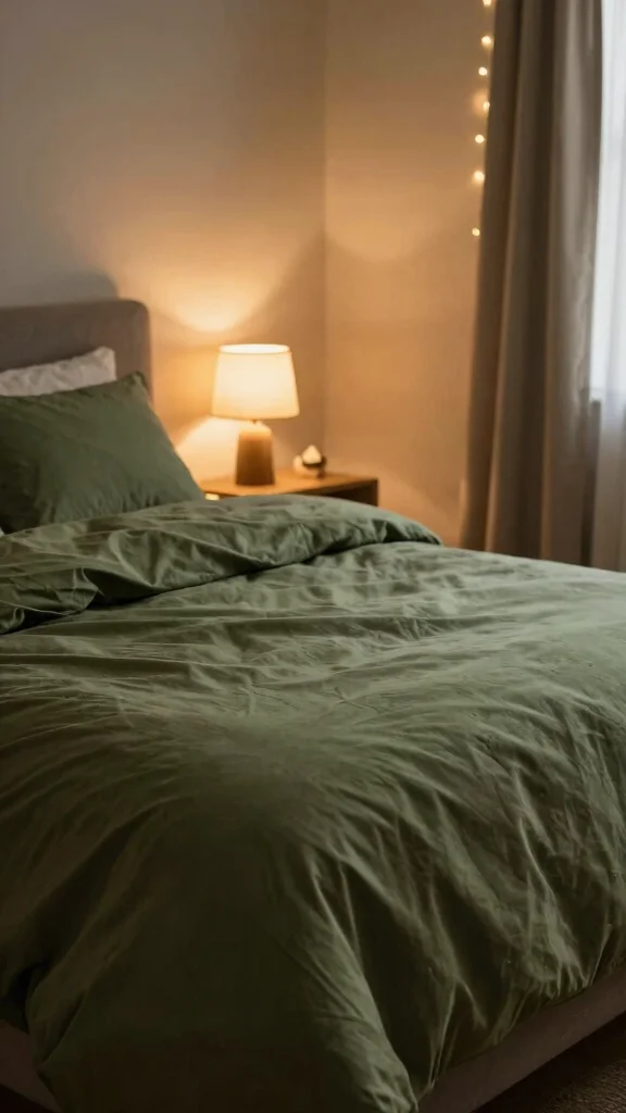 Pro Tip: Don’t hesitate to mix and match bedding items! You can create a unique look by combining different textures and shades of army green. Just make sure to keep a common thread, like similar patterns or colors, to maintain harmony in your bedroom design.
