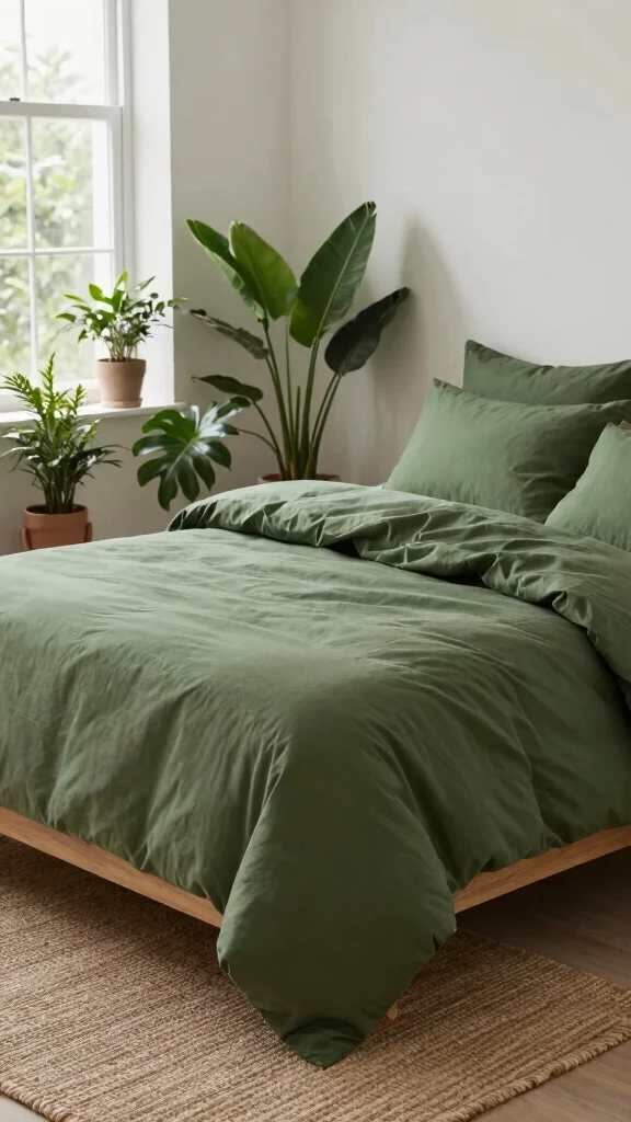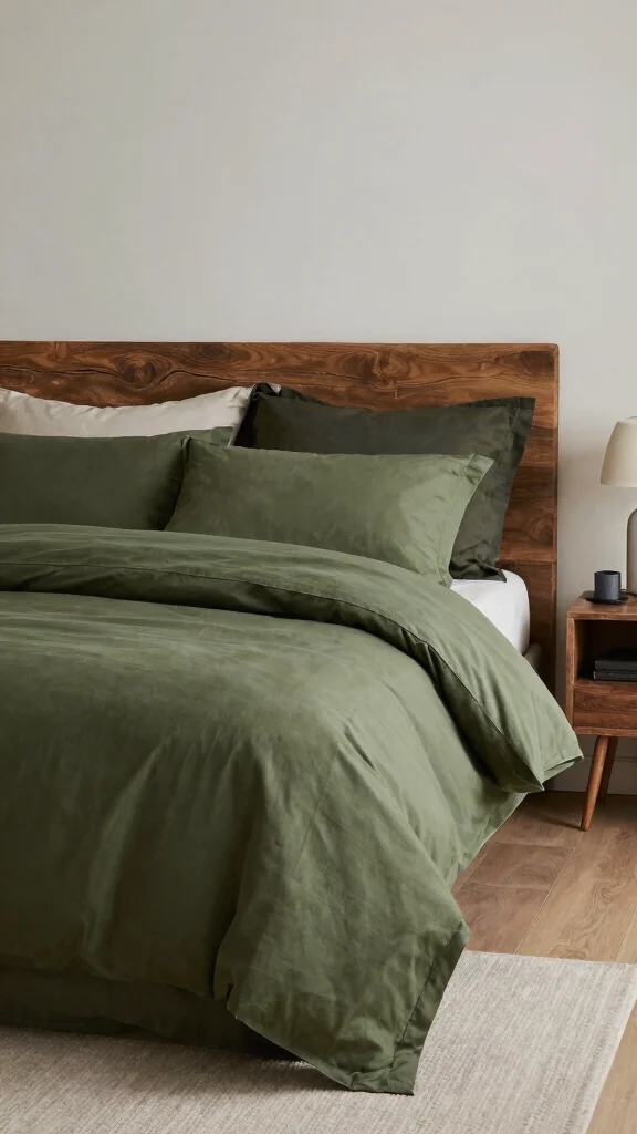 Incorporating natural elements into your bedding can elevate the earthy appeal of army green. Seek out bedding made from organic or sustainable materials, such as organic cotton or linen, which not only feels fantastic but also aligns with an eco-friendly lifestyle.