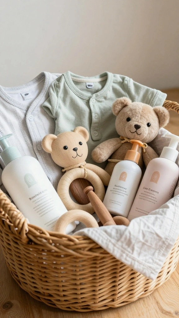 – Create a gift basket filled with practical items and fun toys.