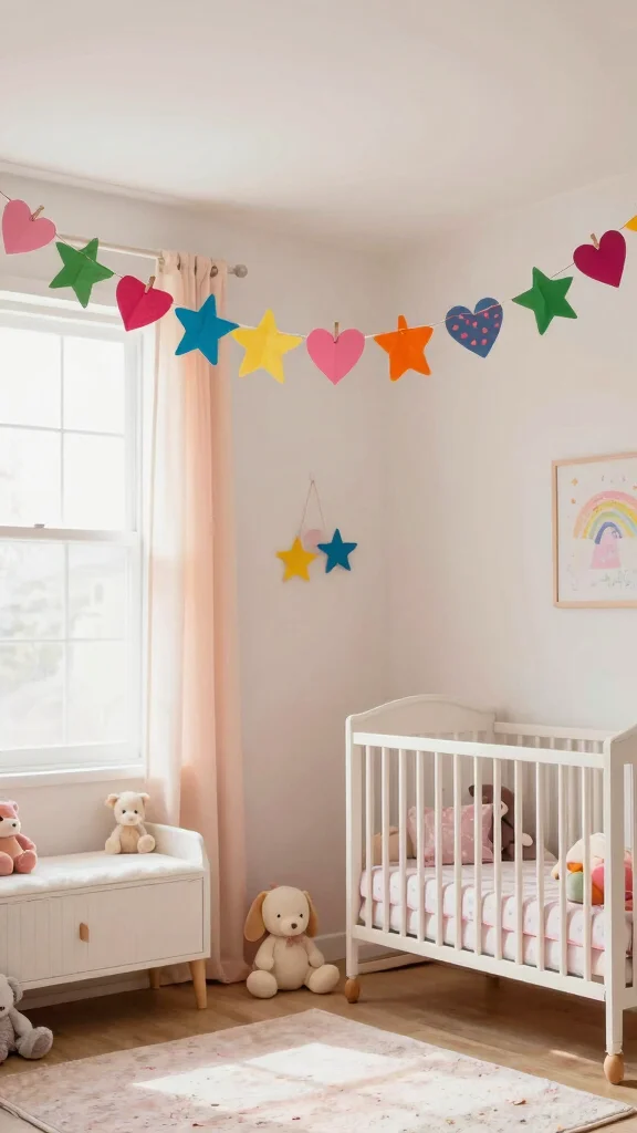 Fun fact: 3 to 5 colorful paper garlands made from recycled paper can instantly elevate a nursery vibe. Hang them at varying heights to create playful depth and easy seasonal color swaps—your baby room wall decor stays fresh, affordable, and eco-friendly.