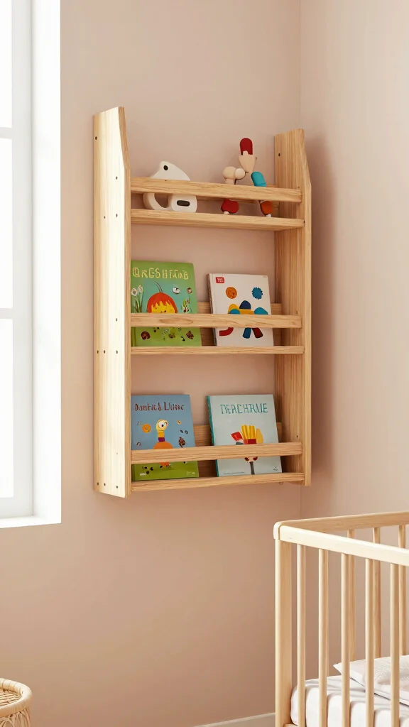 Secure items on the shelves using decorative bookends or small containers that match your nursery’s theme. Display handmade wooden toys to enhance the natural aesthetic and promote eco-friendly values.