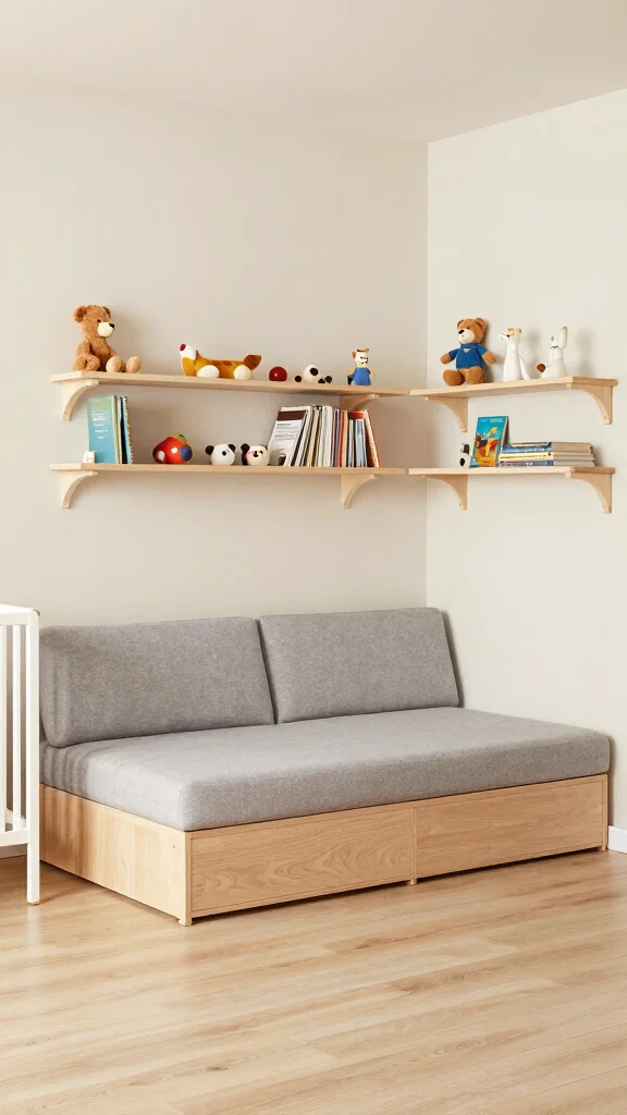 Maximize functionality in your baby room with a sofa bed that incorporates smart storage solutions. Opt for designs featuring drawers or shelves underneath to keep baby essentials neat and accessible. This thoughtful feature helps maintain an organized space that is easy to navigate, especially during busy days. Floating shelves can be used for displaying toys and books, ensuring the floor area remains open and inviting.