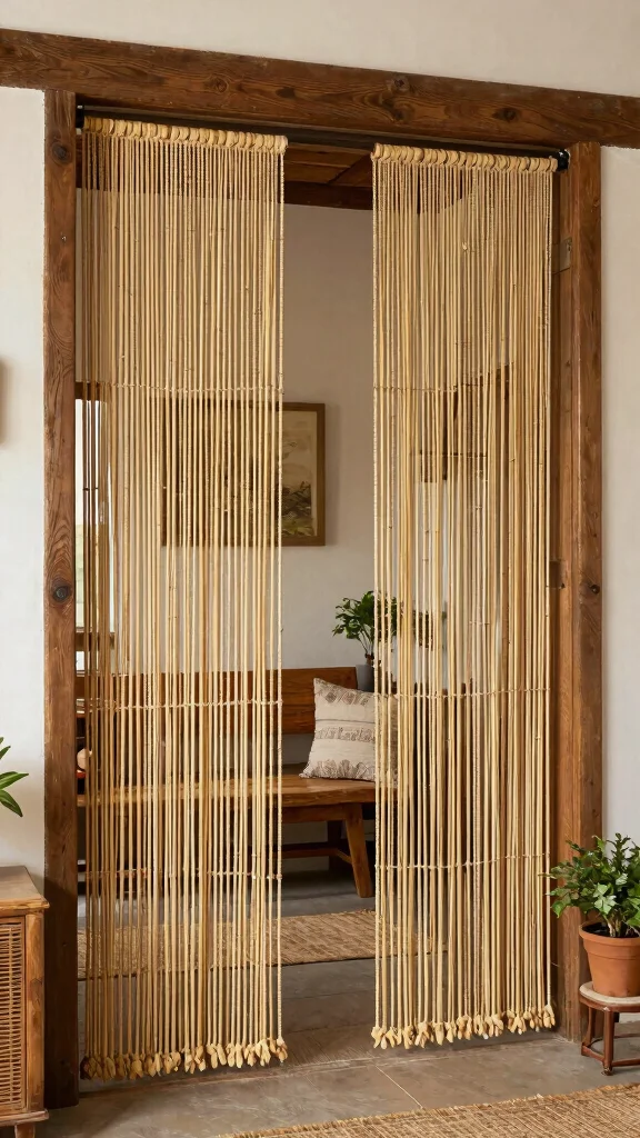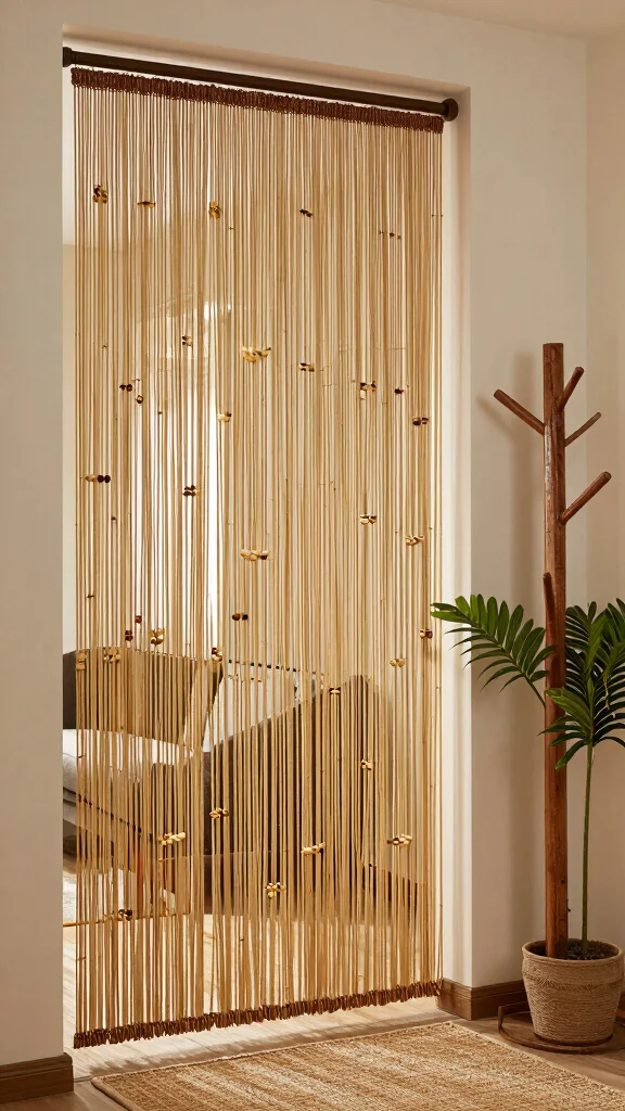 Fun fact: bamboo beaded curtains can transform an entryway with warmth, while quietly absorbing sound. In practice, try dark bamboo against light walls to create instant contrast and a welcoming glow that keeps light dancing through.