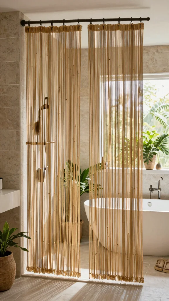 Transform your bathroom into a serene spa-like retreat using bamboo beaded curtains. These curtains provide a stylish alternative to traditional shower curtains while introducing a touch of natural elegance.