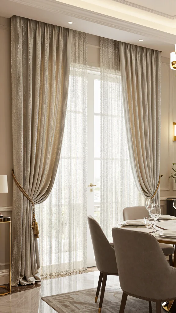 Pair these curtains with minimalist furniture to maintain a sleek appearance. Opt for crystal or glass beads to add a subtle touch of glam, elevating the overall design.