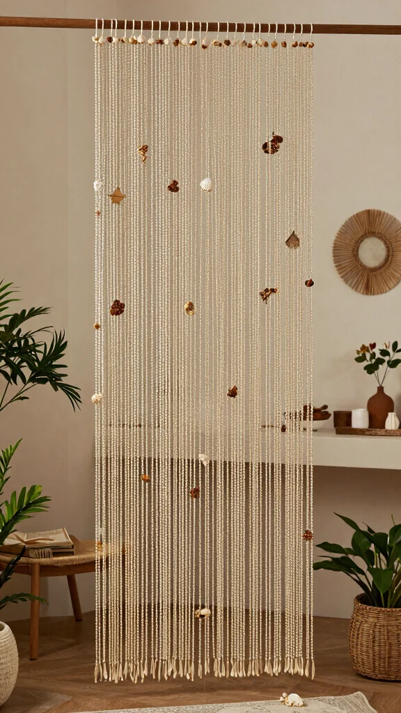 Fun fact: natural-material beaded curtains for closets can cut visual clutter by up to 30%, turning chaos into calm. Pair seashells, stones, or dried flowers with driftwood or bamboo for a soothing, eco-friendly separation. Beaded curtains closet style, naturally.