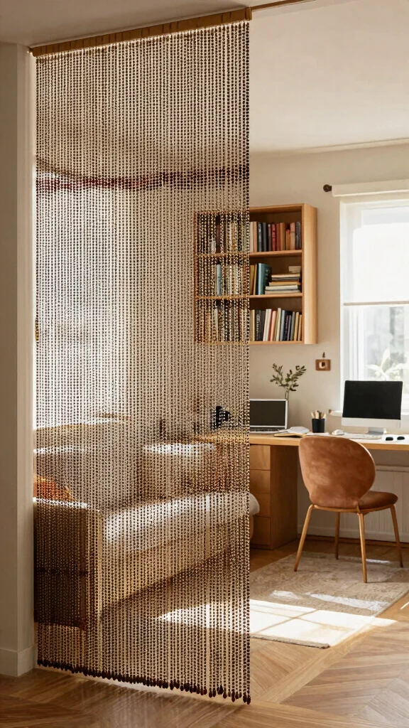 Beaded curtains are a stunning way to define spaces within open areas, creating distinct zones that enhance both charm and functionality. Picture a dressing area separated by beautiful beads or a small workspace that feels cozy yet open. This stylish solution adds character while efficiently organizing your space.