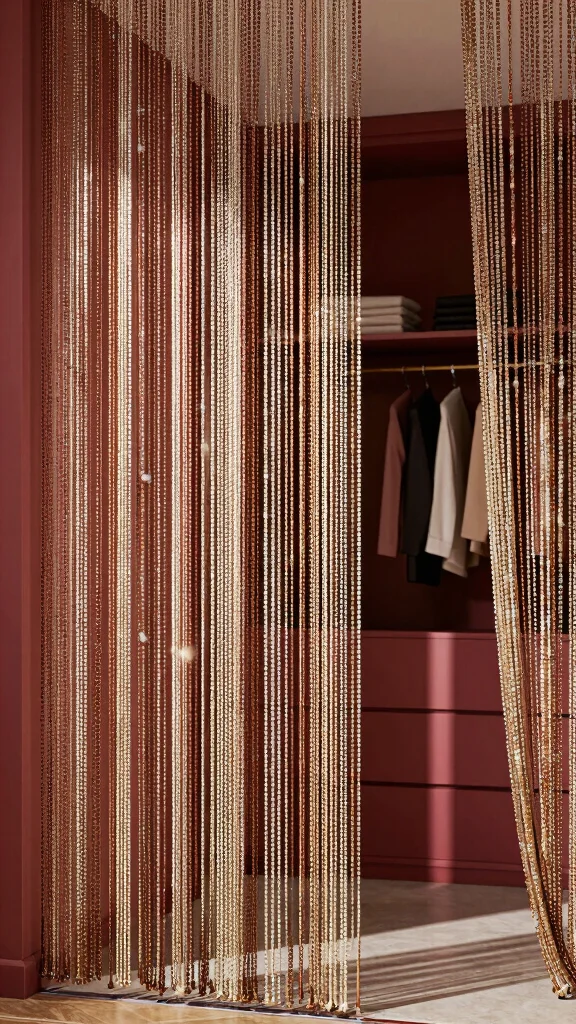 Eco-friendly style doesn’t mean boring decor. Beaded curtains closet with recycled materials adds texture and a story to your space. Choose brands that prioritize sustainability and mix glass and paper beads for a unique, stylish closet you can feel good about.