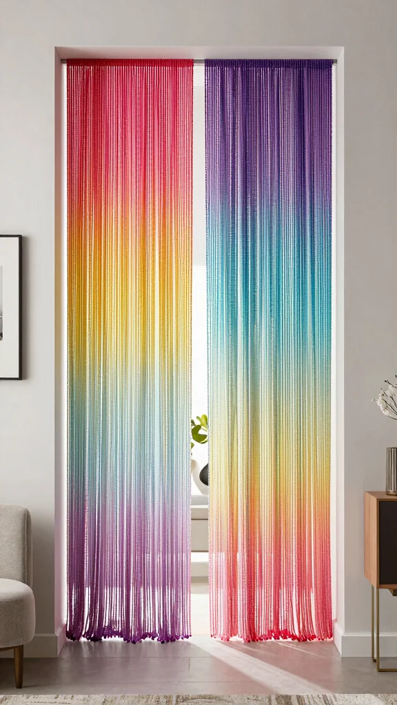 To achieve this whimsical look, choose curtains made from beads that mimic the tie-dye effect. This design can spark conversation and bring a carefree vibe to any room. For a budget-friendly option, consider DIY projects using colorful beads from local craft stores.