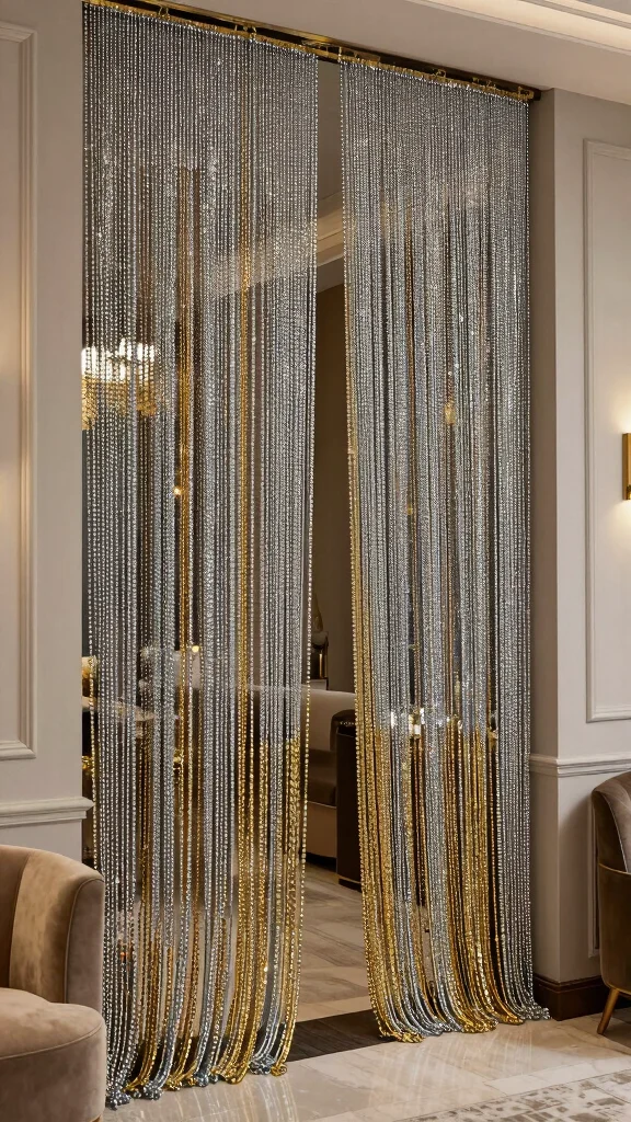 To enhance the look further, pair silver and gold with complementary colors, creating a refined environment. For a budget-friendly option, consider sourcing metallic beads from craft stores or repurposing old jewelry into a unique curtain design.
