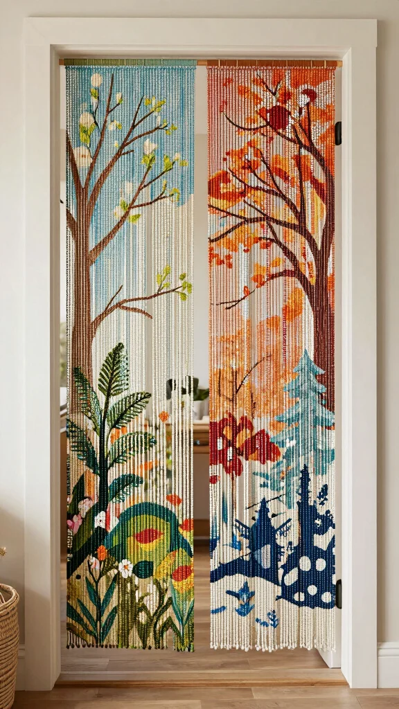 Seasonal themes make beaded curtains pattern updates feel effortless—swap colors and textures with the seasons, and your doorway becomes a mood board. I love mixing soft pastels for spring, bold hues for summer, and warm tones for fall to keep festive vibes alive all year.