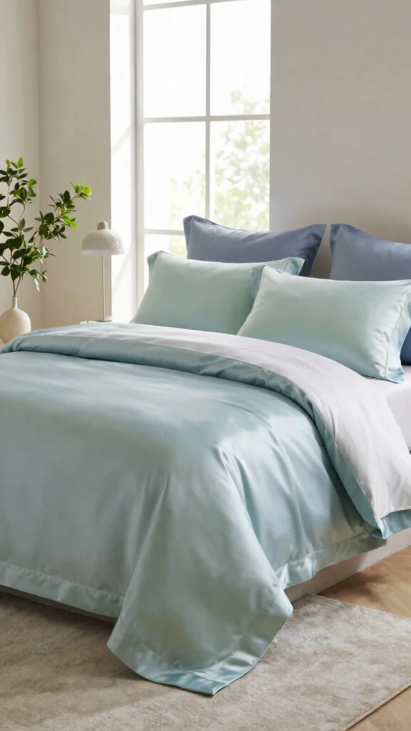 For a touch of luxury, consider elegant silk bedding in soft blue and green hues. Silk not only feels sumptuous against the skin but also adds sophistication to your bedroom decor. This style fosters a serene atmosphere, transforming your space into a calm retreat.