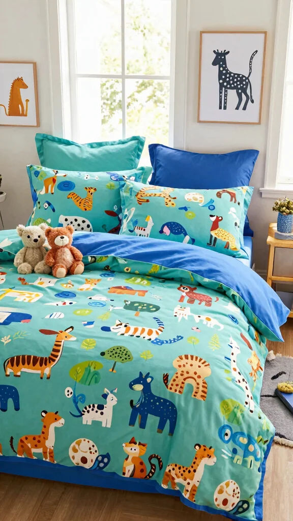 Pair this playful bedding with solid color sheets to maintain balance in the overall look. Incorporate decor elements like animal-themed wall art or plush toys to enhance the whimsical feel without overwhelming the space. Maintain a consistent color palette to ensure harmony throughout the room.