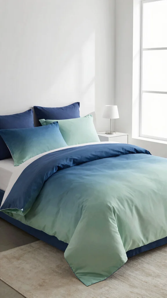 Introduce a stunning ombre effect in your bedding to create depth while maintaining a soft and subtle aesthetic. Gradients transitioning from deep ocean blues to gentle seafoam greens offer a calming ambiance, ideal for a peaceful bedroom environment. This visual transition adds a sense of elegance that can elevate your decor.