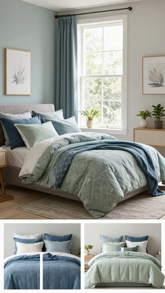 This post is for anyone who loves home decor and wants to create a serene bedroom aesthetic. If you find yourself dreaming of peaceful mornings surrounded by calming bedding designs, this guide is tailor-made for you. From nautical stripes to elegant silk, you’ll discover options that fit various styles and preferences. I gathered these ideas to help you explore unique bedding color combinations that will bring a touch of nature indoors, making your bedroom a true sanctuary.