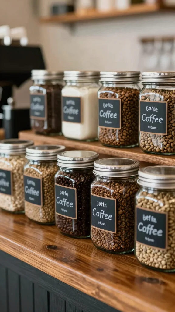 Use jars of varying heights for an appealing display. Label each jar with the type of bean for easy reference. Including a small scoop in the display makes serving simple.