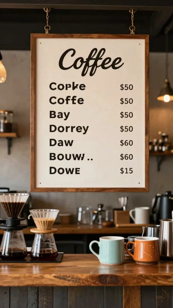 Select a sign that complements your decor style and hang it prominently for easy visibility. Personalize it with your favorite coffee sayings or specials for an extra touch.