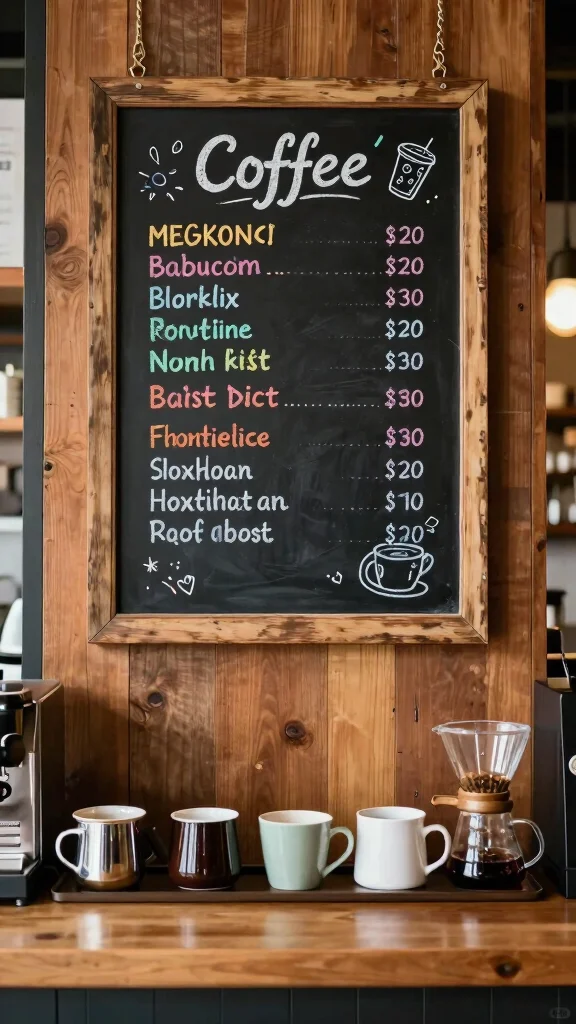 A chalkboard coffee menu adds a fun, interactive element to your coffee bar. This creative canvas allows you to display your favorite coffee recipes, available beans, or daily specials. It’s a fantastic way to engage family and friends in the coffee-making experience.