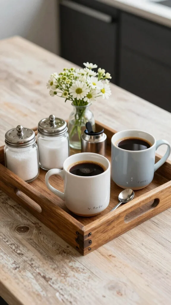 Incorporating a decorative tray into your coffee bar helps keep your space tidy and stylish. A well-chosen tray can unify your aesthetic while organizing essential items like sugar, creamers, and coffee mugs. Choose materials that resonate with your kitchen style, such as rustic wood or sleek metal.