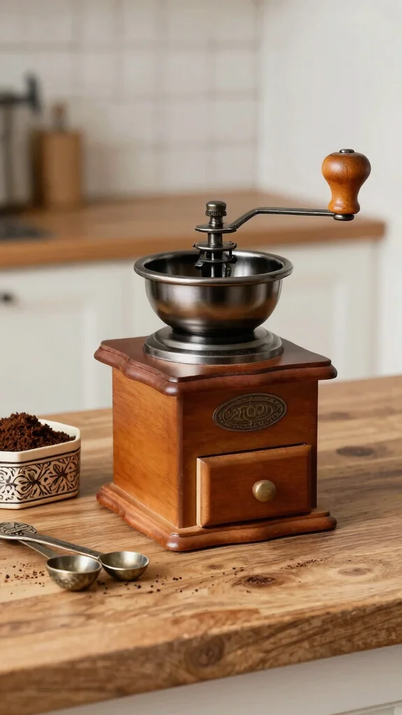 Consider using a decorative box to store coffee grounds neatly. Pair your grinder with unique measuring spoons for added charm. Keep a small container of fresh beans nearby for inspiration.