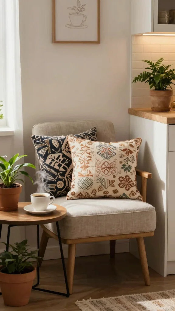 Designate a comfortable corner in your kitchen for enjoying coffee, enhancing relaxation and enjoyment.