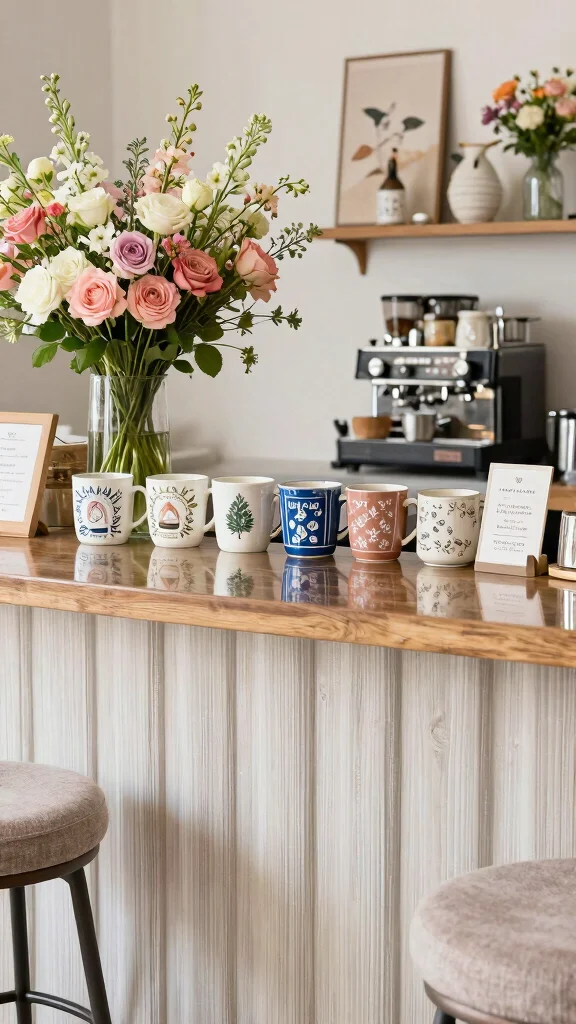 Add personal touches like artwork or unique mugs to reflect your style and make your coffee bar inviting.