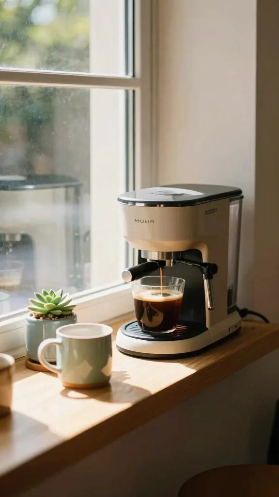 Transform your window sill into a delightful coffee spot, perfect for sipping your favorite brew while enjoying the view. This small area can become your personal retreat, combining nature and your love for coffee. Picture a compact coffee maker nestled against the window, surrounded by decorative plants and candles for a cozy ambiance.