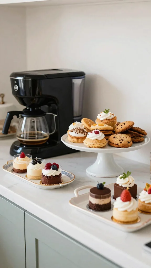 Use decorative trays to keep your desserts organized, adding a small menu card with pairing suggestions to elevate the experience. This approach not only enhances the appeal of your coffee corner but also sparks conversation among family and friends.