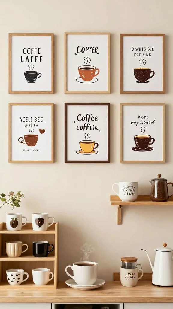 Choose prints or canvases that resonate with your love for coffee, like quotes or illustrations. Here are some ideas for incorporating wall art effectively: