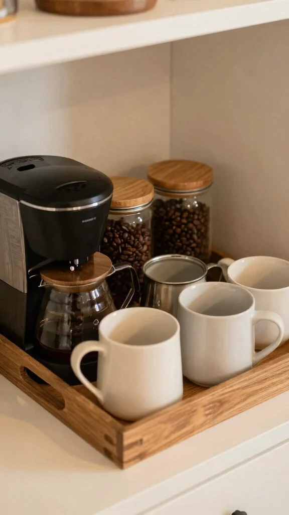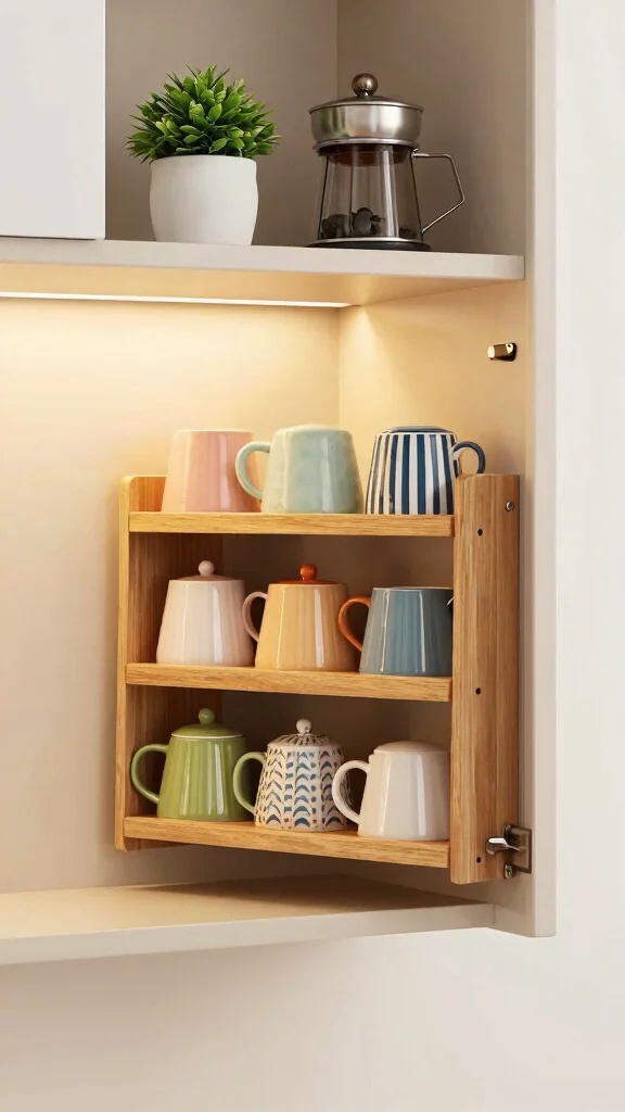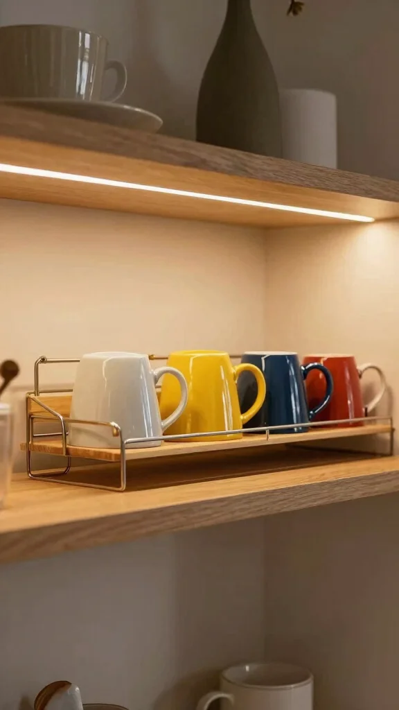 – Incorporate a small rack: A tiered rack can hold mugs or accessories, keeping everything organized.