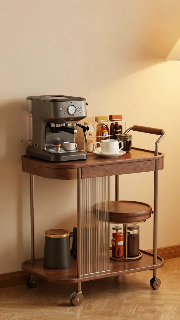 – Incorporate Seating Options: Add a compact coffee cart with seating to turn your coffee station into a cozy nook, perfect for enjoying your favorite brews.