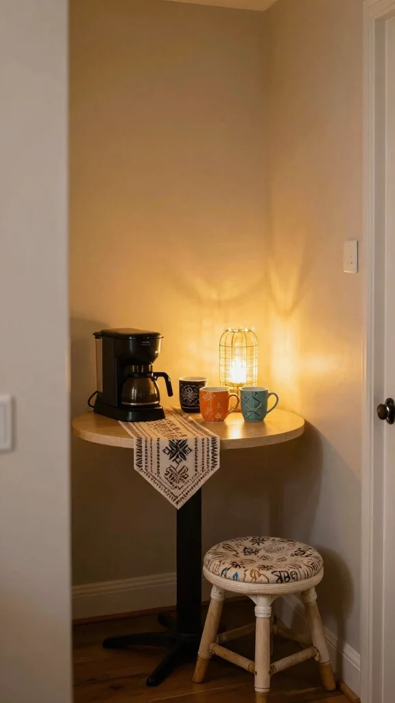 – Include a stool: If space permits, a small stool can create a comfy coffee-making area.