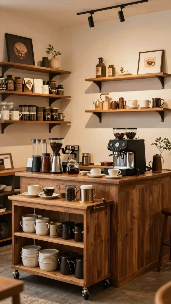 – Choose a neutral color palette: Light wood or white shelves pair seamlessly with your coffee gear.
