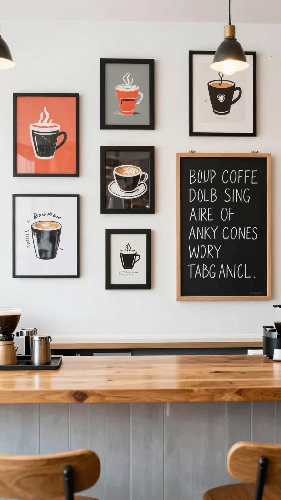 – Incorporate fun wall art or quirky coffee-themed signs.
