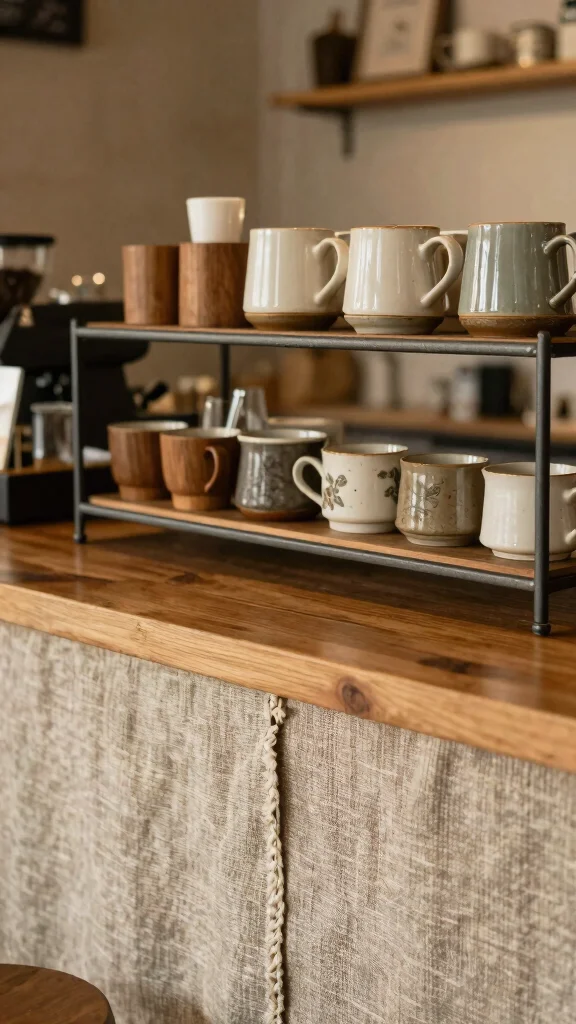 Want to create a warm and inviting coffee bar? Layering textures can add depth to your space. Combine materials like wood, metal, and soft fabrics for a balanced look. A wooden countertop with metal shelving and a cozy runner creates an inviting atmosphere. Styling Tips: