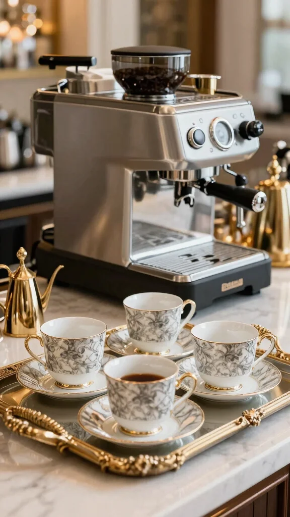17. Luxurious Coffee Setup with Elegant Accents