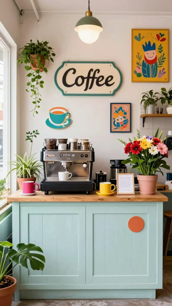 18. Whimsical Coffee Station with Fun Decor