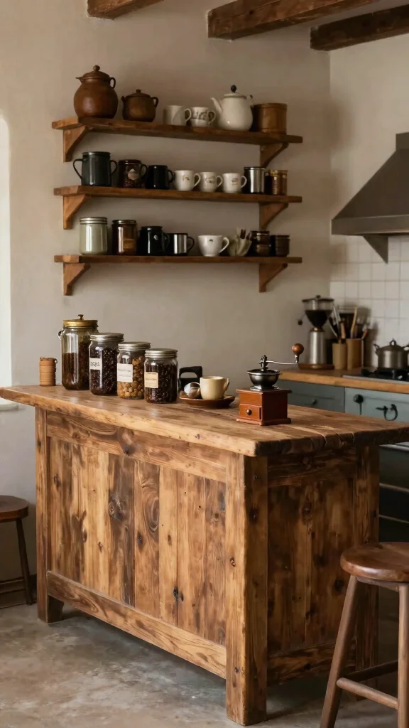 4. Rustic Coffee Bar on a Repurposed Table