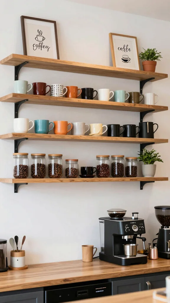 5. Chic Coffee Bar with Open Shelving