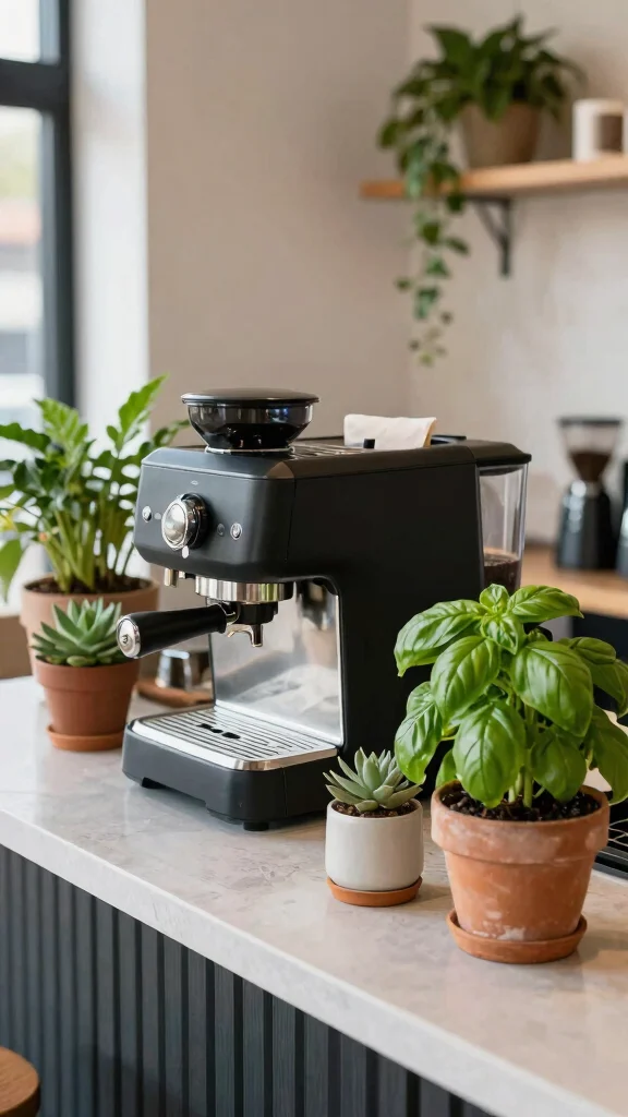 6. Modern Coffee Bar with a Touch of Greenery